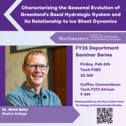 Earth, Environmental and Planetary Sciences Weekly Seminar Series - Dr. Mark Behn discusses "Characterizing the Seasonal Evolution of Greenland's Basal Hydrologic System and its Relationship to Ice Sheet Dynamics."