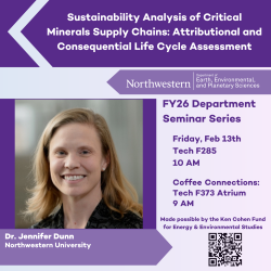 Earth, Environmental and Planetary Sciences Weekly Seminar Series - Dr. Jennifer Dunn discusses "Sustainability Analysis of Critical Minerals Supply Chains: Attributional and Consequential Life Cycle Assessment."