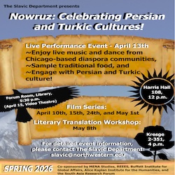 This Spring, the Northwestern University Department of Slavic Languages and Literatures is hosting its third annual Nowruz event series, Celebrating Persian and Turkic Culture. The series includes a live multicultural performance event with Chicago-based diaspora communities: On April 13th, 12-3pm (Harris Hall 108), come learn about Persian and Turkic cultures, enjoy traditional music and dance, and sample delicious ethnic cuisine.